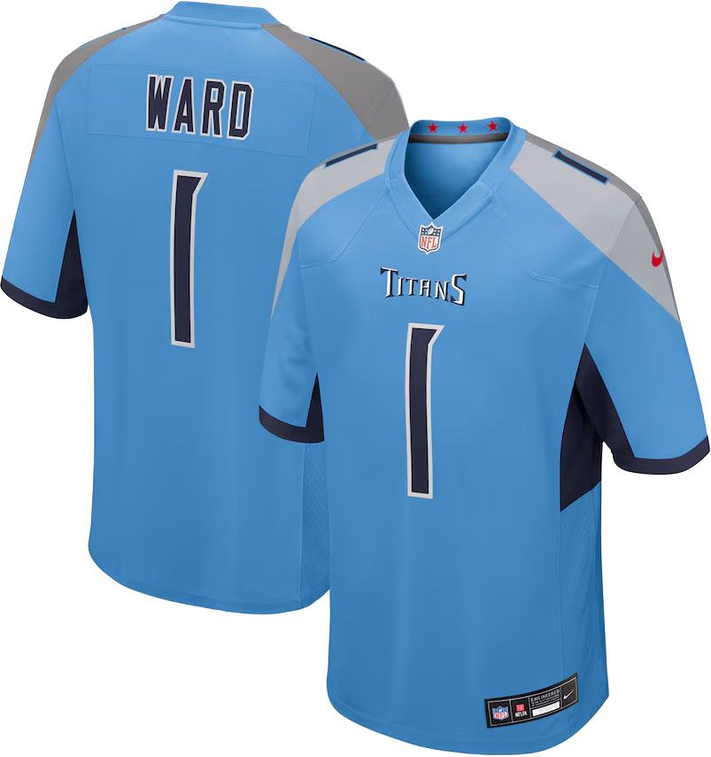 Nike Men's Tennessee Titans Cam Ward #1 White Away Game Jersey