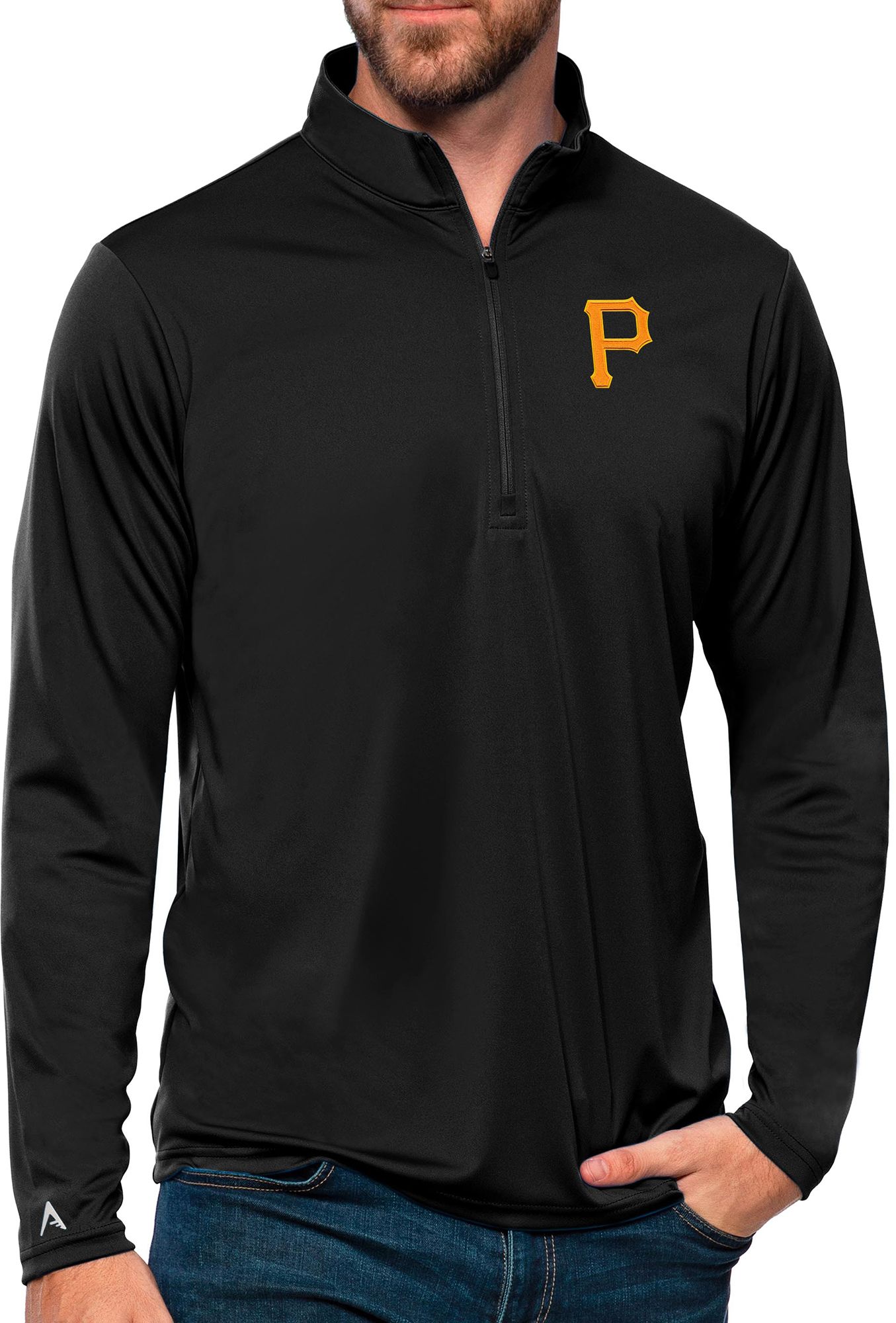Antigua Men's Pittsburgh Pirates Black Tribute 1/4 Zip Pullover