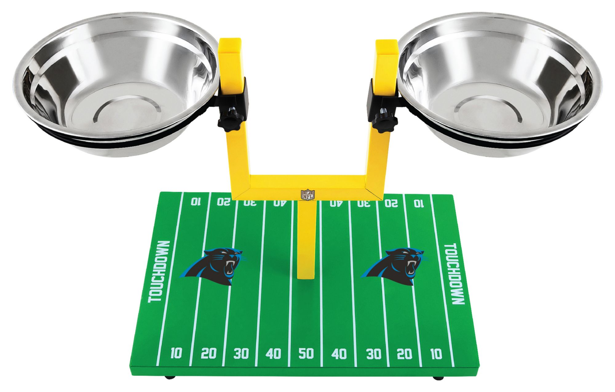 Made of durable materials this feeder comes with height adjustable dual stainless steel bowls set on a non-slip and waterproof football field designed base
