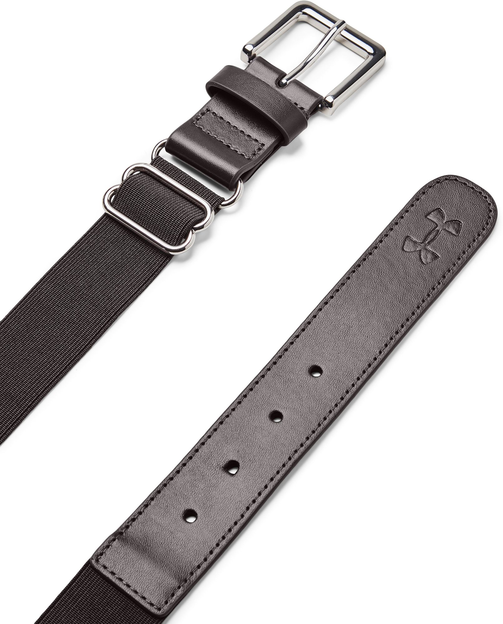 Great for practice or game day, the UA Basball Belt adds style and functionality to your young athlete's game. The Youth Under Armour® Baseball Belt features a metal D-Ring, heavy-duty elastic construction and PU coating in high-abrasion areas for excellent durability. The fully-adjustable design provides an ideal fit, able to accommodate up to a 32" waistline. The UA logo on the front tab adds style.